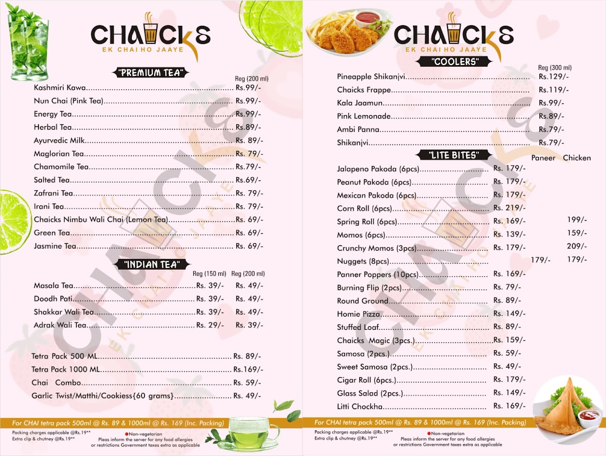 Chaicks - Best Tea Coffee Snacks Cafe in Mohali Menu